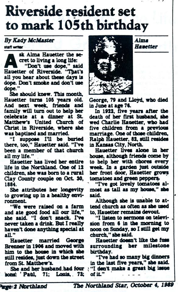 Carolina Brenner Renner) and would die in her home in August 1929. Carolina's home is the old white house that is on the south side of the Renner-Brenner Site Park. Lousia passed in 1933. The are both buried in the cemetery that bears their name on the west side of Gateway southwest of the Eagle Animal Hospital. When John moved in with Carolina and her husband Leslie, she had a special room for her dad where she had an electric door bell by his bed to summon her when he needed help. My first wife, Mary Brenner Smith and I bought the home in 1980 and that room still had the door bell in it. It was years later before I learned the history of the door bell button on the wall.