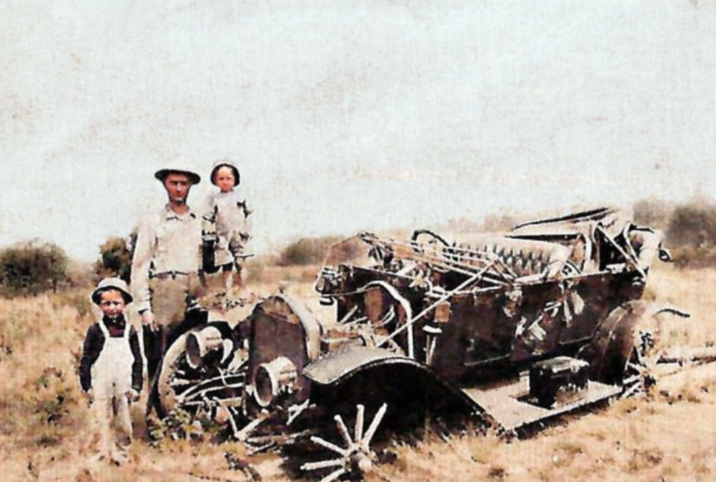 John Wesley Brenner driving an REO Speedwagon. The were considered trucks then. Yes, a rock band would later steal their name.