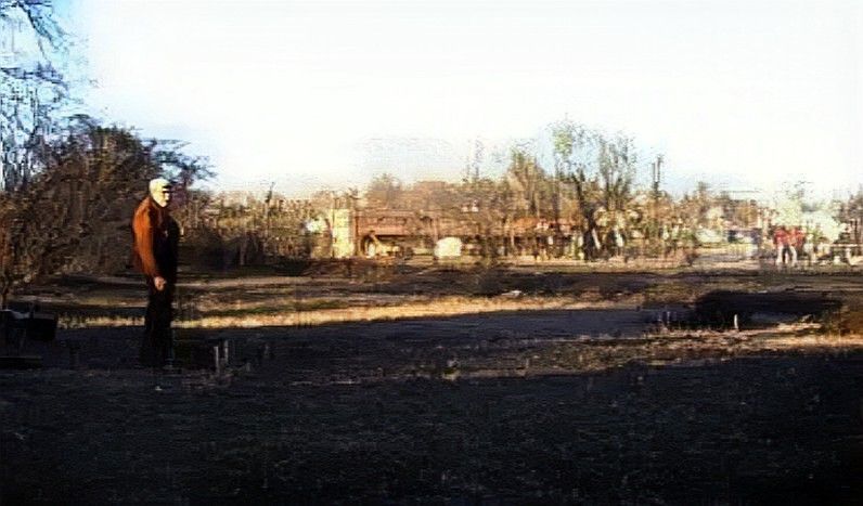 Jet's football team shown in the background during Gary's Archaeology class. The newest City Hall now occupies that spot.