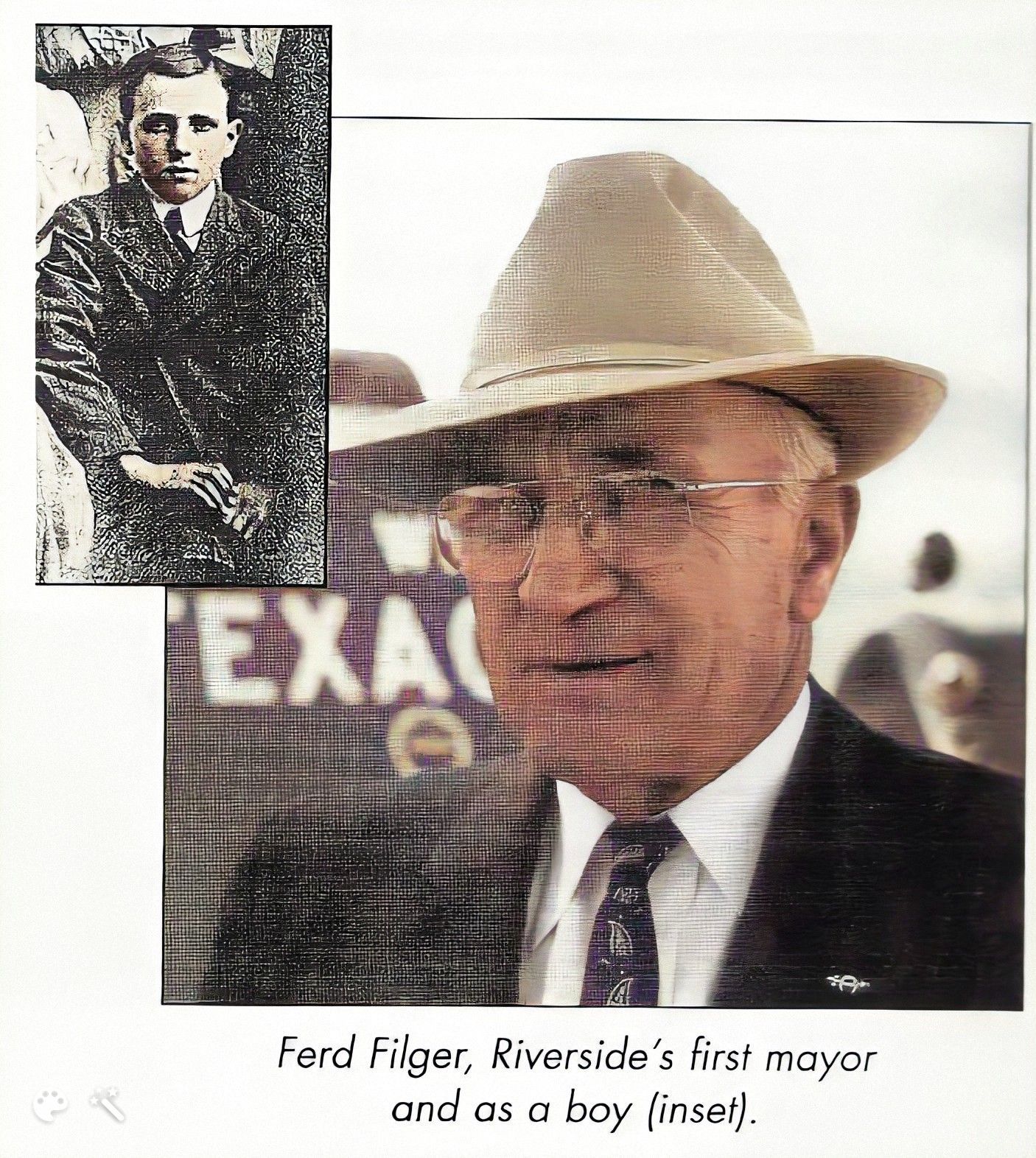 He came to Riverside, started his oil business, and married again in 1938. Filger had three sons and two daughters, eleven grandchildren and seven great-grandchildren. He died Feb. 19, 1985. When asked about his years as mayor and if there was anything that remained vivid in his mind or any special occasion, he said, "Just keeping the city going those first years was enough of a challenge."